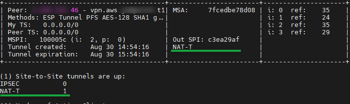 We have a checkpoint GW r81.10, where we have created multiple S2S IPSec VPN with other clients, but specifically, with 1 client(StronSwan) , we are having communication problems the tunnel shows UP however the endpoints are unable to communicate one thing I observed different from the other 3rd parties tunnels is under the SmartView the tunnel detail shows monitor UDP encapsulation NATT.