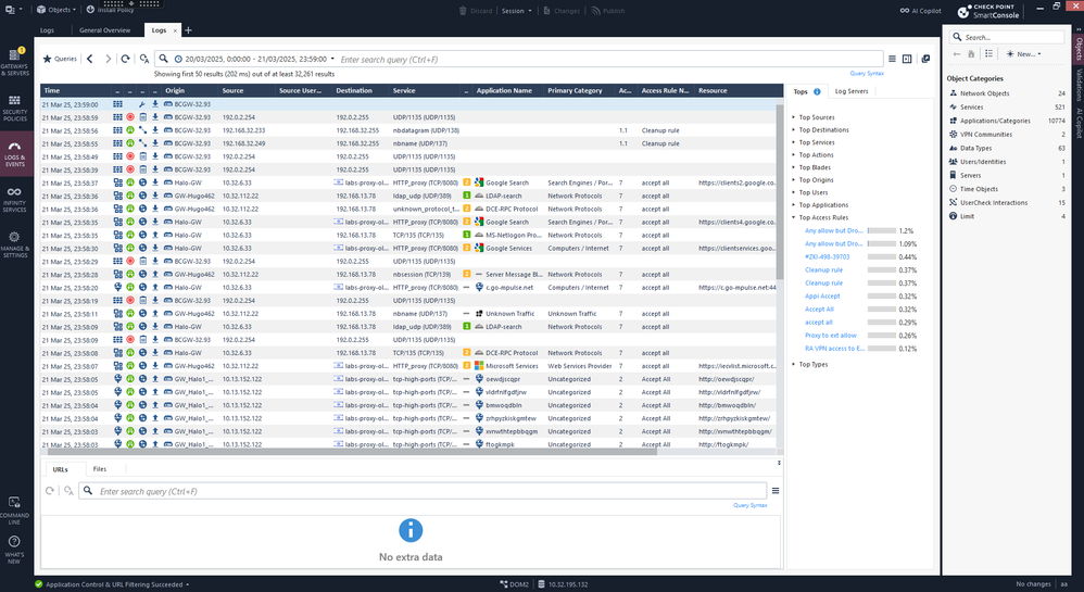 - SmartConsole now surfaces Top Matched Access Rules (and Top Log Types) as built-in statistics, so you can quickly see which rules are doing the most work - right where you manage policy and logs.