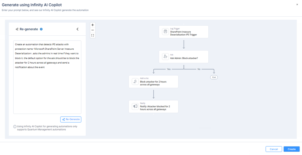 Bonus: Once connecting Quantum Enforcement connector, this also unlocks the ability to build custom AI‑generated automations that include IP blocking.