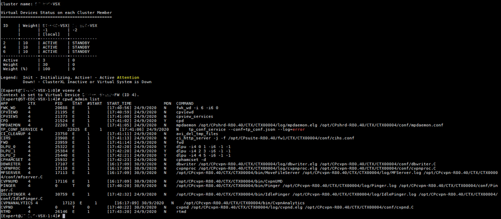 1.On both nodes of the VSX cluster, the cpwd_admin list command shows the following outputs: